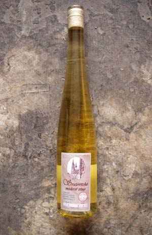 | č.1 -Svatovítskémedové vínoJednáse o přírodní medové víno -medovinu.Nenífiltrováno, jeho čirost je dánadlouhodobýmzráním a opakovanýmstáčením, kdyusazené nečistoty zůstávají na dnězracíchnádob. Díky tomuto postupu je jehochuť výraznější. Zlatistébarvy, chuťově asladkostí připomíná vínaaperitivní.Zrací nádoby jsou ošetřeny SO2.Objemláhve je 0,5 l s 14% +- 0,5% obj. alkoholu dlešarže. 170,- Kč |